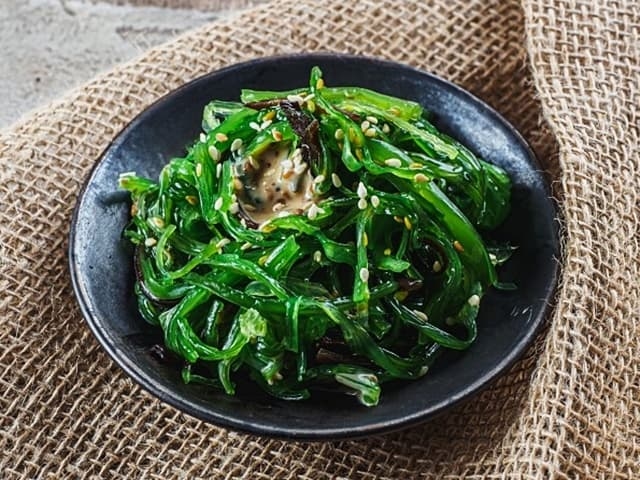 Фуджи ролл с вешенками, чуккой и салатом айсберг, заправленный ореховым соусом